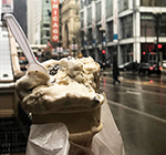 Walking in the Chicago theatre district, eating a nice ice cream. There is added sugar in the ice cream but not only to get it sweet but also to get a pleasant texture. Sugar attracts and holds water which allows smaller icecrystals to form in a frozen dessert. No sugar would result in a grainy ice cream.